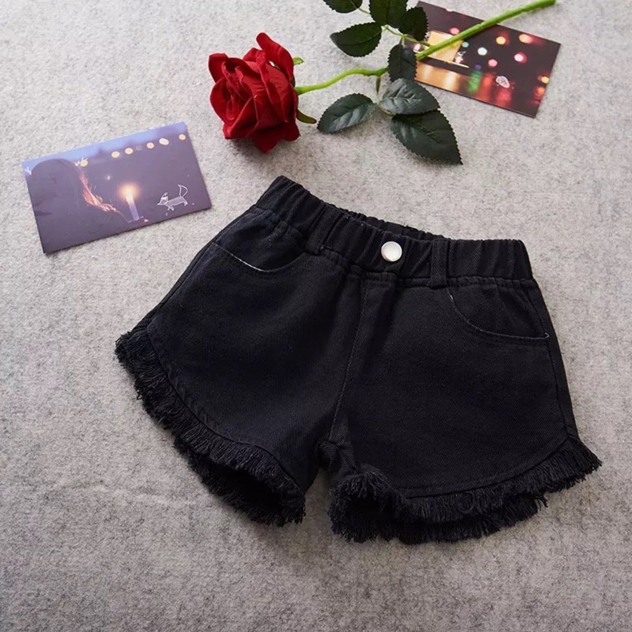 フリンジデニムショートパンツ